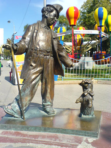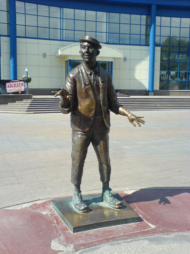 На пяточке перед цирком поставлены фигуры, напрямую олицетворяющие цирк - Никулина, Попова, Карандаша.