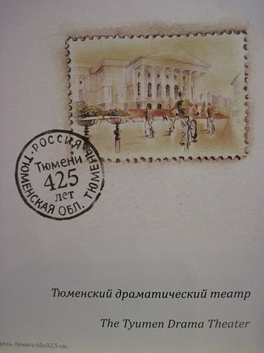 Открытка № 6. Тюменский драматический театр, построенный пару-тройку лет назад на площади 400-летия Тюмени. Раньше здесь было пустое пространство, которое использовали для проведения всяких городских мероприятий - празднования официальных праздников, День города, новогодние горки. Теперь на этой площади с трудом умещаются 2 малюсенькие горки и елка. Но все равно это место очень популярно, мы и сами с удовольствием ходим сюда на прогулки, благо от нашего дома идти минут 10.