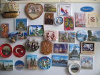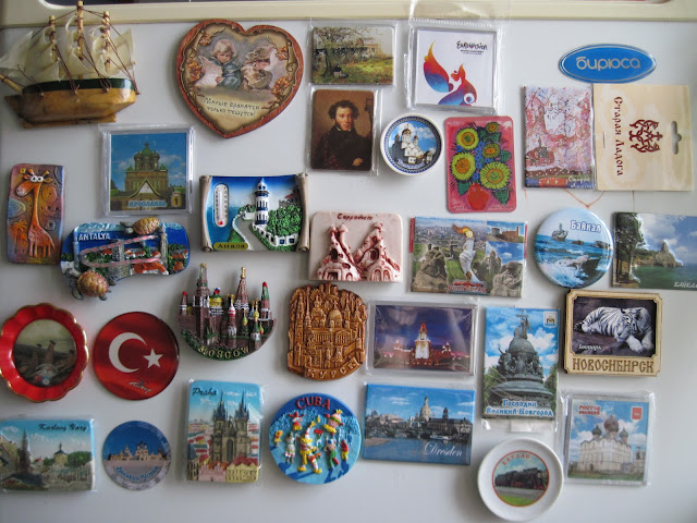 Так как коллекция жирафов пополняется медленно, а в дом нести хочется и хочется, то решила я собирать магниты и тарелочки разных городов и стран. Сама я уже 10 лет никуда не езжу, поэтому помогли собирать коллекцию опять же подруги по форуму. Кто-то присылал сувениры своего города, а кто-то привозил и из поездок. Самые дорогие и любимые подружки даже просили своих друзей привезти для меня сувениры. В результате всей этой деятельности коллекция начала расти и разрастаться