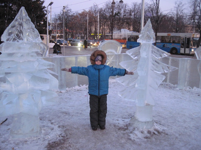 Темой ледяных фигур в этом году была география. Во льду "увековечили" все материки, а так же всякие знаменитые строения разных стран